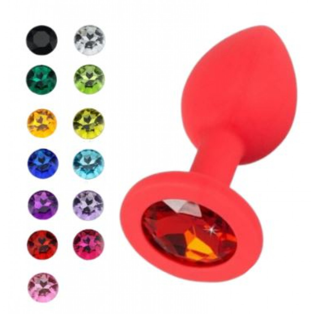 • Анальная ювелирка Красный силикон размера М (цвет камня в ассортименте)