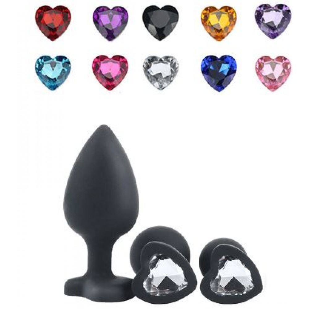 Анальная ювелирка Черная сердце силикон размера М (цвет камня в ассортименте)