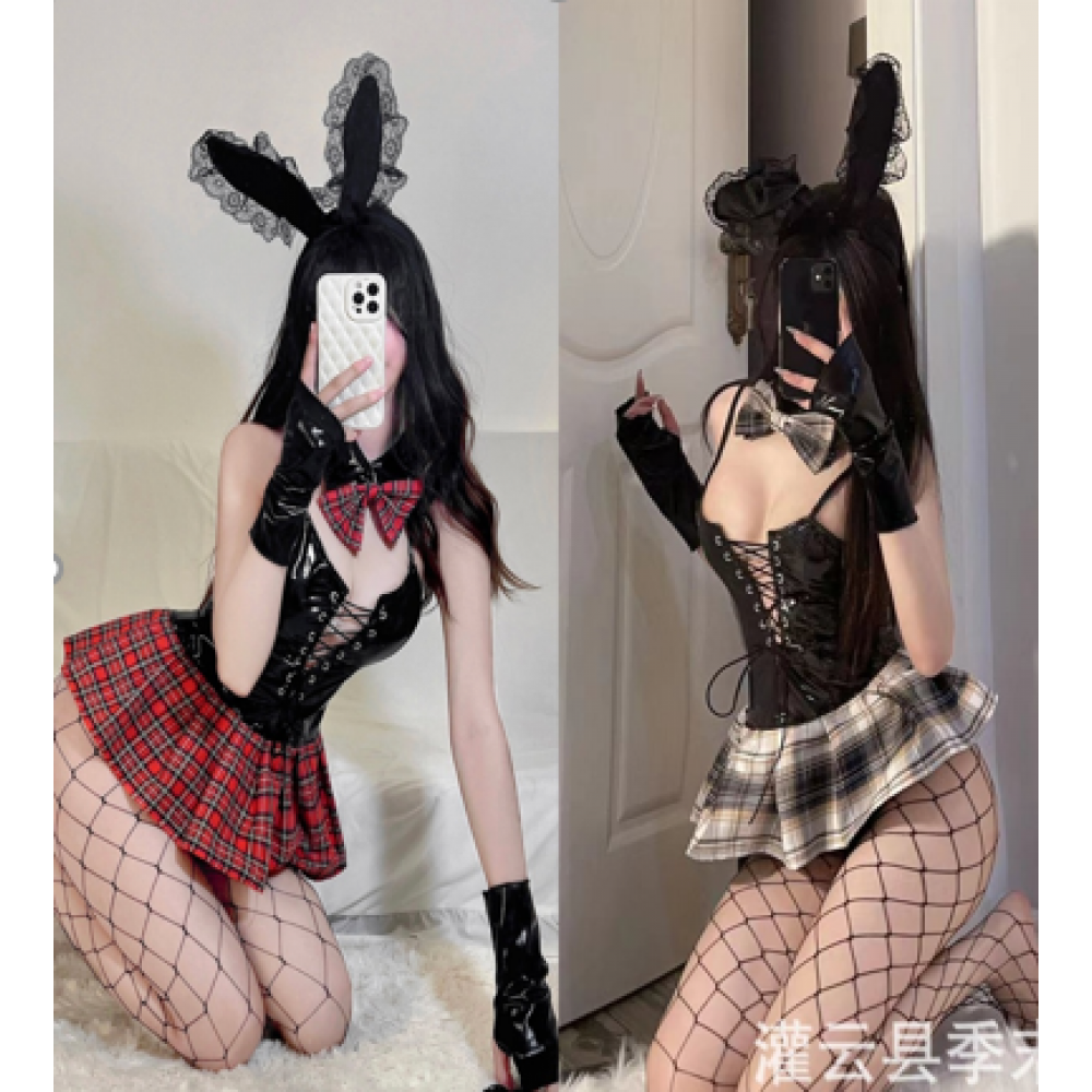 Костюм сладкой Зайки (N01021) ушки, платье с латексным карсетом и трусиками