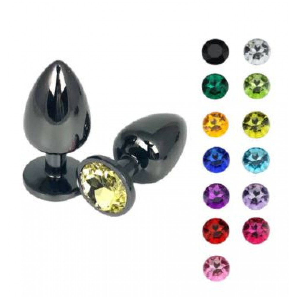 Анальная ювелирка Черная сталь размера S (цвет камня в ассортименте)