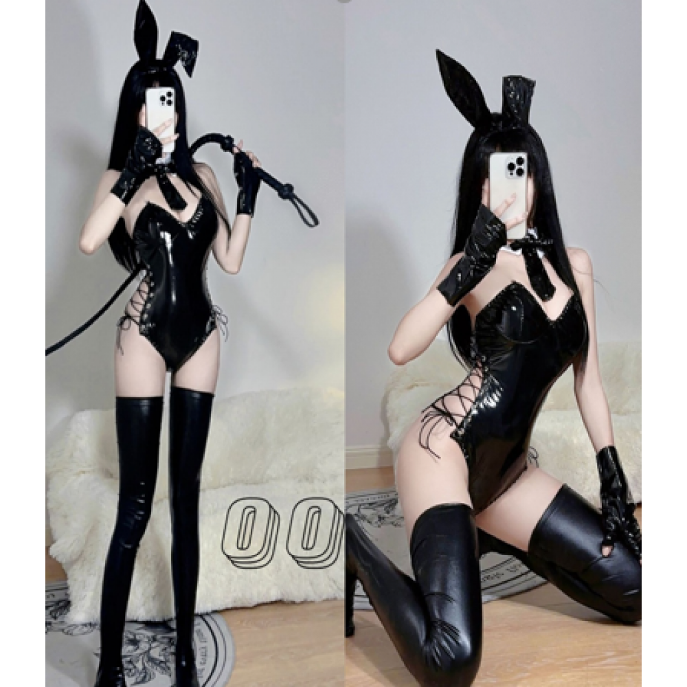 Костюм Латексной Зайки (N08064) ушки, хвостик, манжеты, боди, галстук в наборе