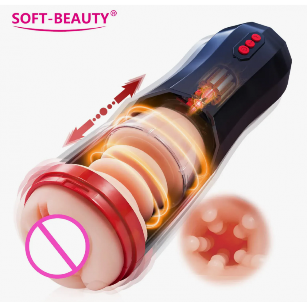 Мастурбатор Soft Beauty с вибрацией, движением вверх вниз