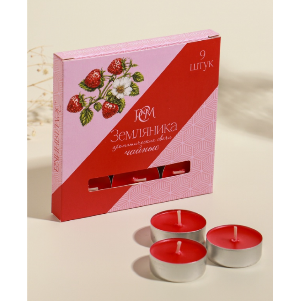 • Набор свечей ароматических чайных «Земляника», 9 шт