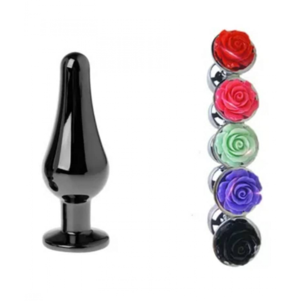 • Анальная ювелирка Темная сталь Роза Tears of Steel размера S (цвет камня в ассортименте)