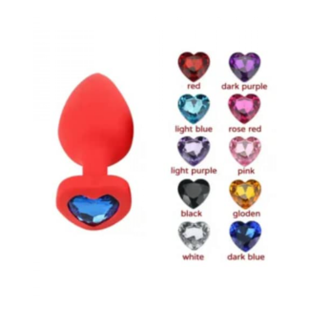 Анальная ювелирка Красная сердце силикон размера М (цвет камня в ассортименте)